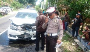 ”Saat akan melalui tikungan, tiba-tiba dari arah berlawanan muncul sepeda motor yamaha, yang dikendarai korban dan menabrak mobil dengan kencang,” kata Asep, Senin 20 (11/4) Siang.