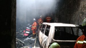 wartapriangan. BERITA BANDUNG. Siang tadi (12/04), sebuah rumah di Jalan Borobudur Cibaduyut Kota Bandung yang digunakan sebagai tempat pembuat bahan sepatu dan sandal ludes dilahap si jago merah. Selain menghanguskan rumah 2 lantai tersebut, api juga menghanguskan 1 unit kendaraan jenis Kijang LSX dan 1 unit sepeda motor jenis Honda Supra X yang terparkir di garasi rumah.