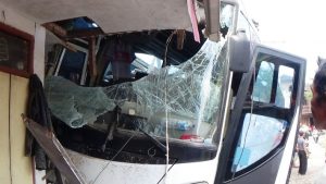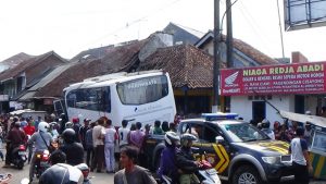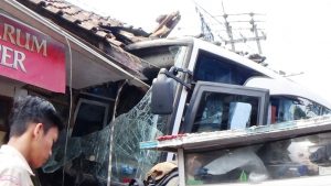 ”Barusan sekitar 30 menit yang lalu, sebuah bus pariwisata dari Tasikmalaya mengarah Bandung. Namun pas sampai simpang tiga BRI, ban mobil tersebut pecah. Kemudian oleng dan menghindar ke arah jalan Pageningan. Lalu menabrak sebuah wa,” jelas Kapolsek Cisayaong, AKP Gunarto saat ditanya sejumlah wartawan di lokasi.