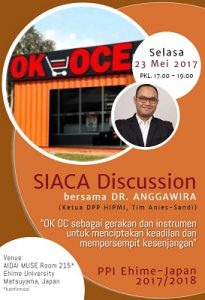 wartapriangan.com, BERITA NASIONALTim Pemenangan Anies Baswedan-Sandiaga Uno sekaligus Co Founder OK OCE Acadedmy, Anggawira diundang menjadi pembicara dalam ‘SIACA Discussion PPI Ehime’ di Ehime University, Matsuyama Jepang. Dalam kesempatan tersebut Anggawira diminta untuk memaparkan program OK OCE (One Kecamatan One Centre of Entrepreneurship) yang merupakan hasil gagasan dari Gubernur dan Wakil Gubernur DKI Jakarta terpilih Anies-Sandi.