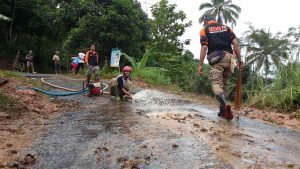 Material longsoran menutupi jalan dengan ketebalan kurang lebih 1 meter dengan panjang 4 meter.