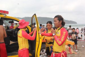 “Tugasnya cukup berat. Dengan anggota sebanyak 40 orang harus mengawasi keselamatan ribuan pengunjung saat beraktifitas di pantai,”kata Jeje.