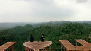 Dari atas anjungan tersebut, pengunjung dapat menyaksikan pemandangan alam hijau seluas mata memandang.