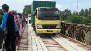 “Akan di bangun dengan bentang 50 meter, dengan lebar 9 meter terhitung trotoar yang masing-masing lebarnya 1 meter, jadi lebar ruas jalannya 7 meter, tanpa pilar tengah sehingga aliran sungai tidak terganggu,” ungkapnya.