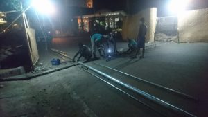 Menurut penanggung jawab pekerjaan, Mumu, saat ini sedang dilakukan pembuatan saluran pembuangan air dari tugu ikan dan memasang kabel listrik.