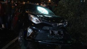 Mobil Toyota Catlya D 1397 IT rusak parah. Mobil tersebut tengah parkir di pinggir jalan dan ditabrak dari belakang hingga terdorong ke depan dan menabrak pohon hingga tumbang.