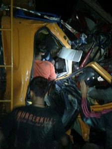 wartapriangan.com. BERITA TASIKMALAYA. Diduga hilang kendali, sebuah mobil menyeruduk bagian depan truk tronton di Jalan Raya Kadipaten tepatnya Kampung Cibahayu, Desa Cibahayu, Kecamatan Kadipaten, Kabupaten Tasikmalaya, Jawa Barat, Senin (31 /07/ 2017) sekira pukul 23.30 WIB.