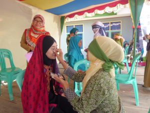 Unik! Ibu-ibu di Ciamis Ikuti Lomba Merias Wajah Dengan Mata Tertutup