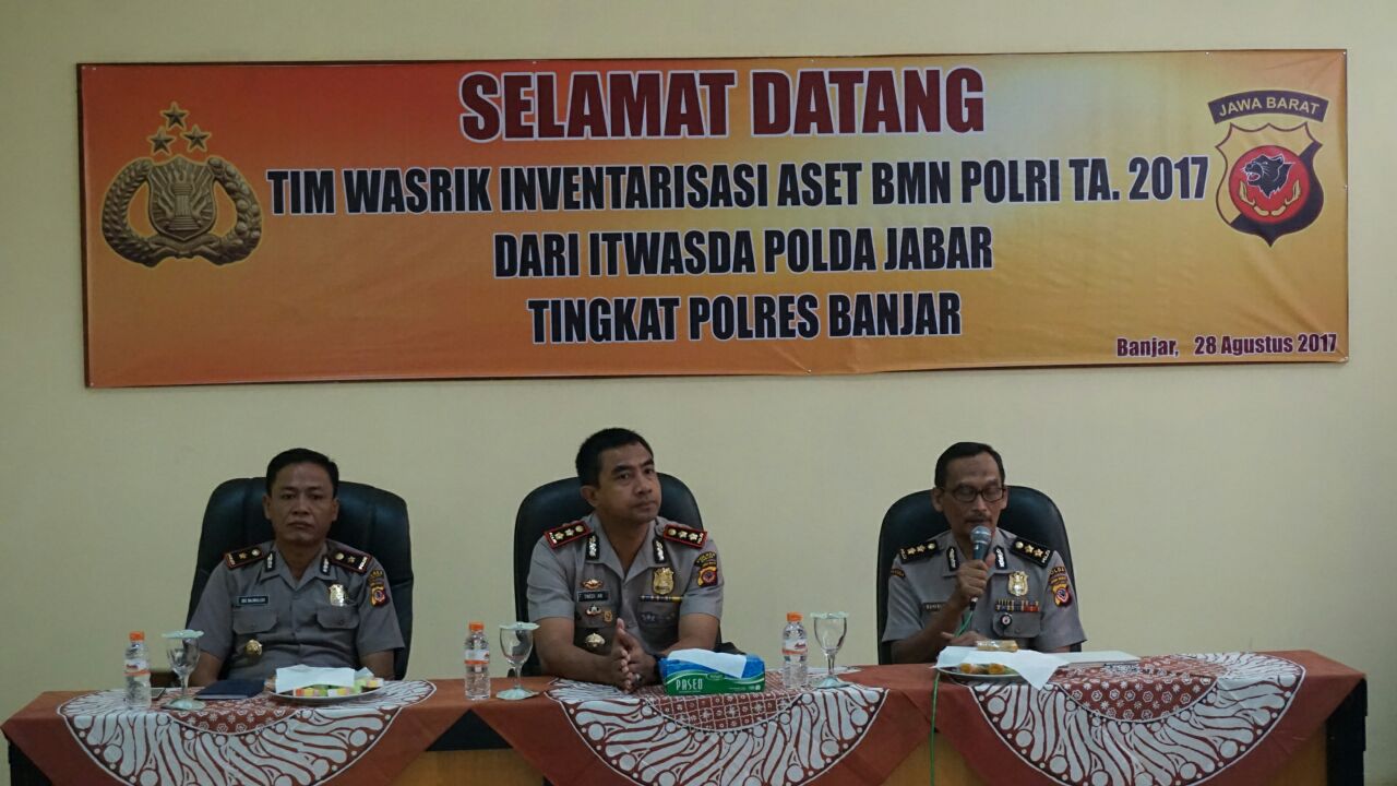 wartapriangan.com, BERITA BANJAR. Polres Kota Banjar Polda Jawa Barat, menerima kunjungan Tim Wasrik Inspektorat Pengawasan Daerah (Itwasda) Polda Jawa Barat, tentang Wasrik Inventaris Aset BMN ( Barang Milik Negara ) Polri Tahun 2017 Tingkat Polres Kota Banjar, yang dipimpin langsung oleh Itwasda Polda Jabar di Ruang Utama Mapolres Banjar, Senin (28/08) sekitar pukul 08.00 WIB.