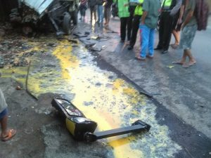Meski tidak ada korban jiwa, namun kedua kendaraan yang terlibat kecelakaan mengalami kerusakan yang cukup parah. Selain itu, telur yang diangkut box tersebut berserakan hingga memakan setengah badan jalan.