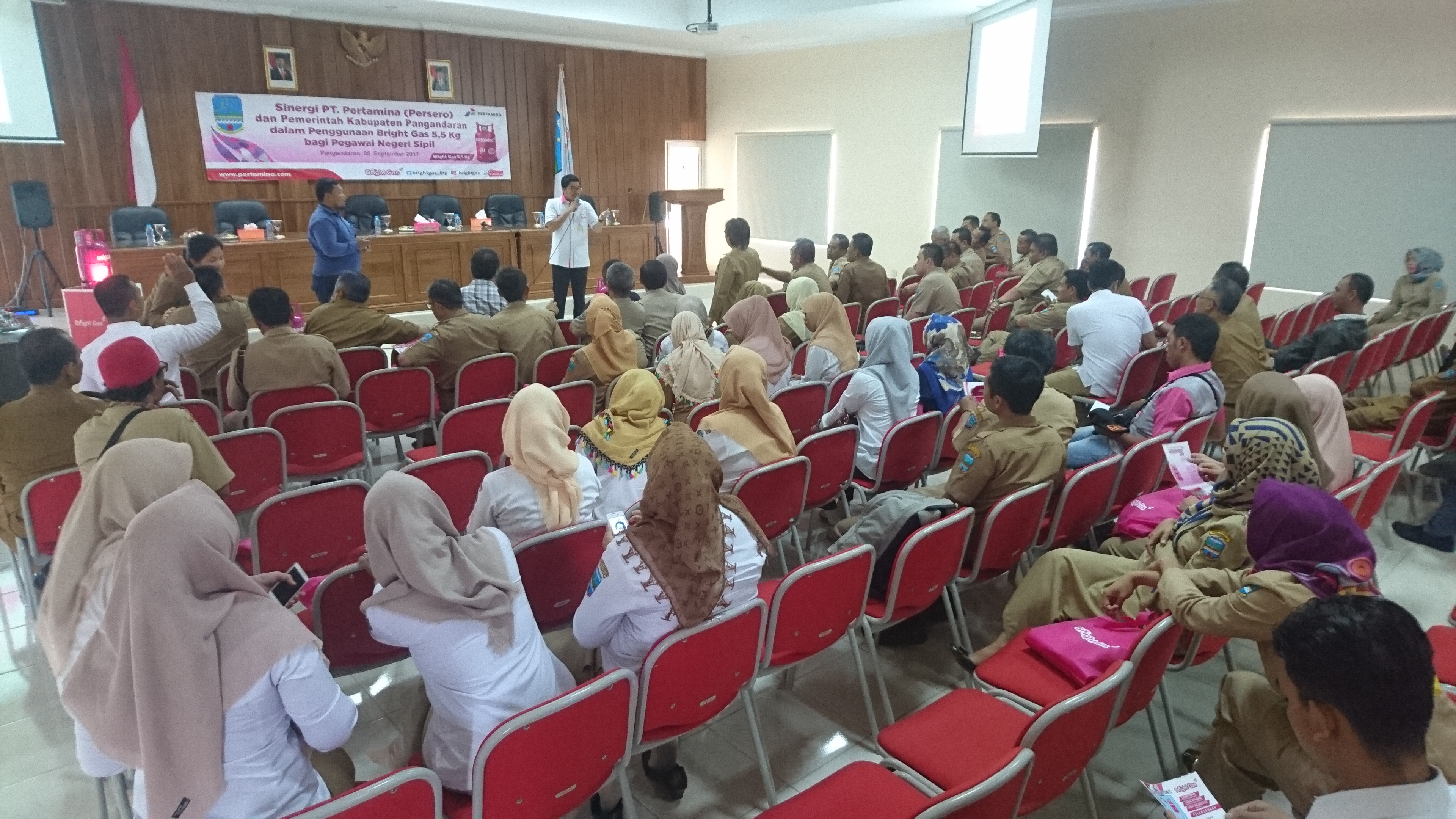 wartapriangan.com, BERITA PANGANDARAN. PT Pertamina (Persero) dan Pemerintah Kabupaten Pangandaran menggelar sosialisasi dalam penggunaan Bright Gas 5,5 kg bagi Pegawai Negeri Sipil (PNS) di Kabupaten Pangandaran. Kegiatan ini dibuka oleh Wakil Bupati Pangandaran H Adang Hadari di aula kantor Setda Pangandaran di Parigi, Selasa (5/9/2017) siang ini.