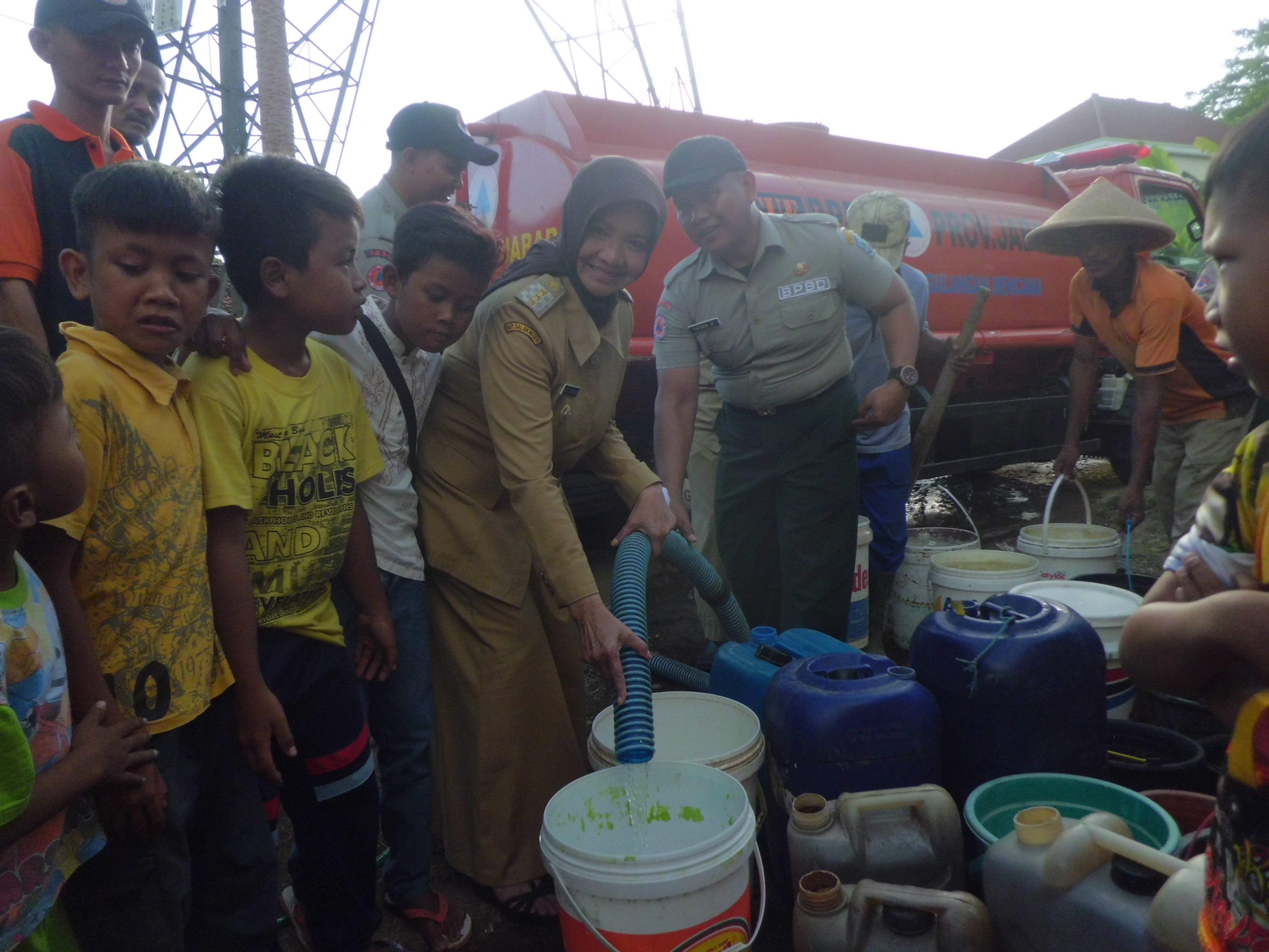 Bersama Badan Penanggulangan Bencana Daerah (BPBD) Kota Banjar, Walikota Banjar, DR. Hj. Ade Uu Sukaesih, S.Ip., M.Si., Senin (11/09)., memberikan bantuan sosial berupa air bersih sebanyak 5000 liter kepada warga di Dusun Girimulya, RT 01, RW 13, Desa Binangun, Kecamatan Pataruman, Kota Banjar, Jawa Barat.