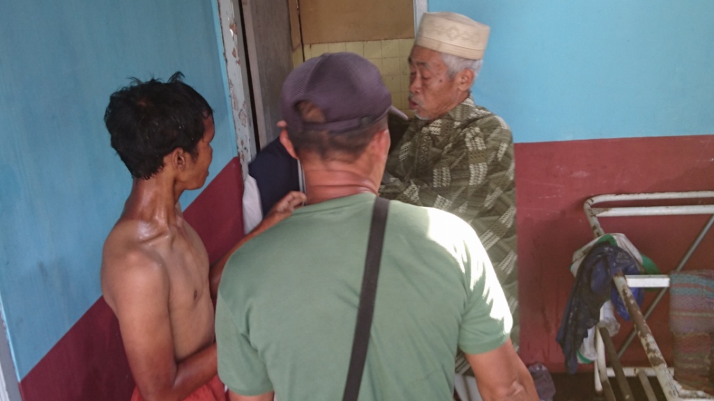 Saat ditanya oleh warga ternyata susah berkomunikasi, sehingga dibiarkan warga sehari semalam hingga akhirnya ditemukan keluarganya. (Iwan Mulyadi/WP)