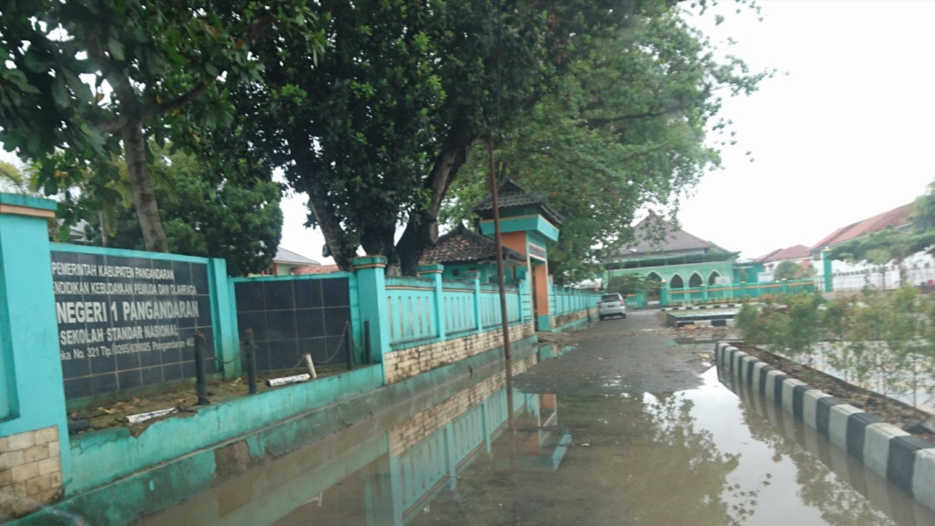 Pantauan Warta Priangan, genangan air berada di jalan depan sekolah SMP Negeri 1 Pangandaran dengan masing-masing genangan bervariasi, mulai dari 15-20 sentimeter.