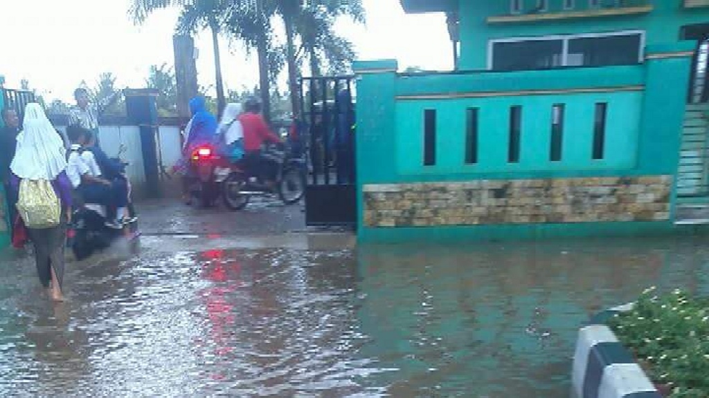 Agus (49), pedagang di pinggir jalan itu mengatakan, meski hujan cuma mengguyur sebentar air sudah menggenangi jalan dan menyulitkan para guru dan siswa yang akan keluar masuk sekolah.