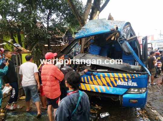 wartapriangan.com, BERITA CIAMIS. Selasa sore (03/10) sebuah Bus Doa Ibu mengalami kecelakaan tunggal di Jalan Raya Ciamis-Banjar, Dusun Citutut, Desa Dewasari, Kecamatan Cijeungjing. Kecelakaan tersebut diduga akibat sang sopir menghindari tabrakan dengan sepeda motor.