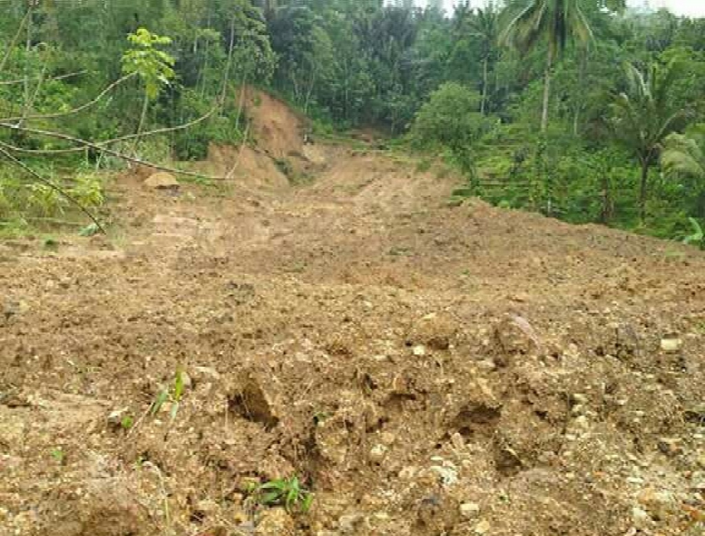 Sementara longsor juga terjadi pada sebuah jalan desa di Dusun Limus Nunggal RT. 04 RW 01 Desa Bangunjaya Kecamatan Langkaplancar Kabupaten Pangandaran, pukul 03.15 WIB, 02 Oktober 2017.