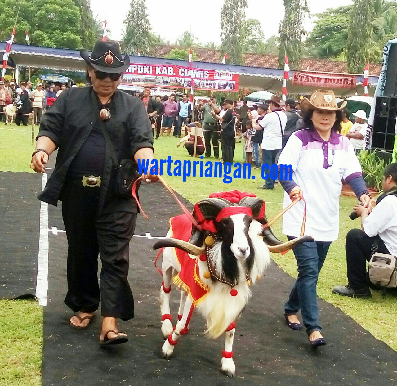 wartapriangan.com. BERITA CIAMIS. Puluhan ternak domba di Festival benar-benar tampil menarik, ternak-ternak itu sengaja dirias dengan aneka asesoris dan berlenggak-lenggok di atas catwalk, mengitari lapangan sepak bola Sukanagara Kecamatan Lakbok Kabupaten Ciamis.