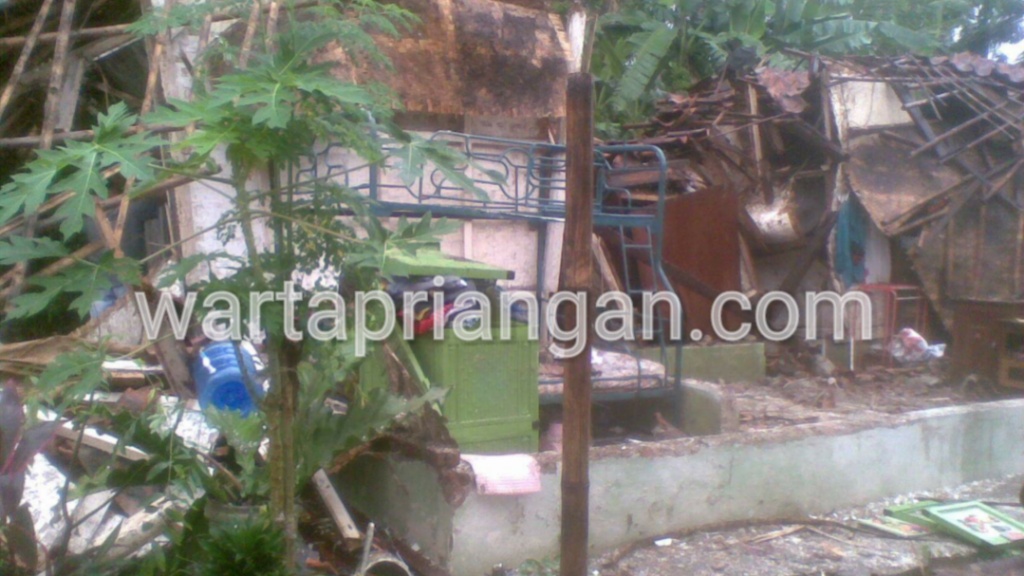 wartapriangan.com, BERITA PANGANDARAN. Sebuah rumah milik Sudybjo (70) warga Dusun Patinggen 1 RT 01 Rw 01 Desa Karangpawitan, Kecamatan Padaherang, ambruk hampir rata dengan tanah, sekitar pukul 2.30 WIB (5/10) dini hari.