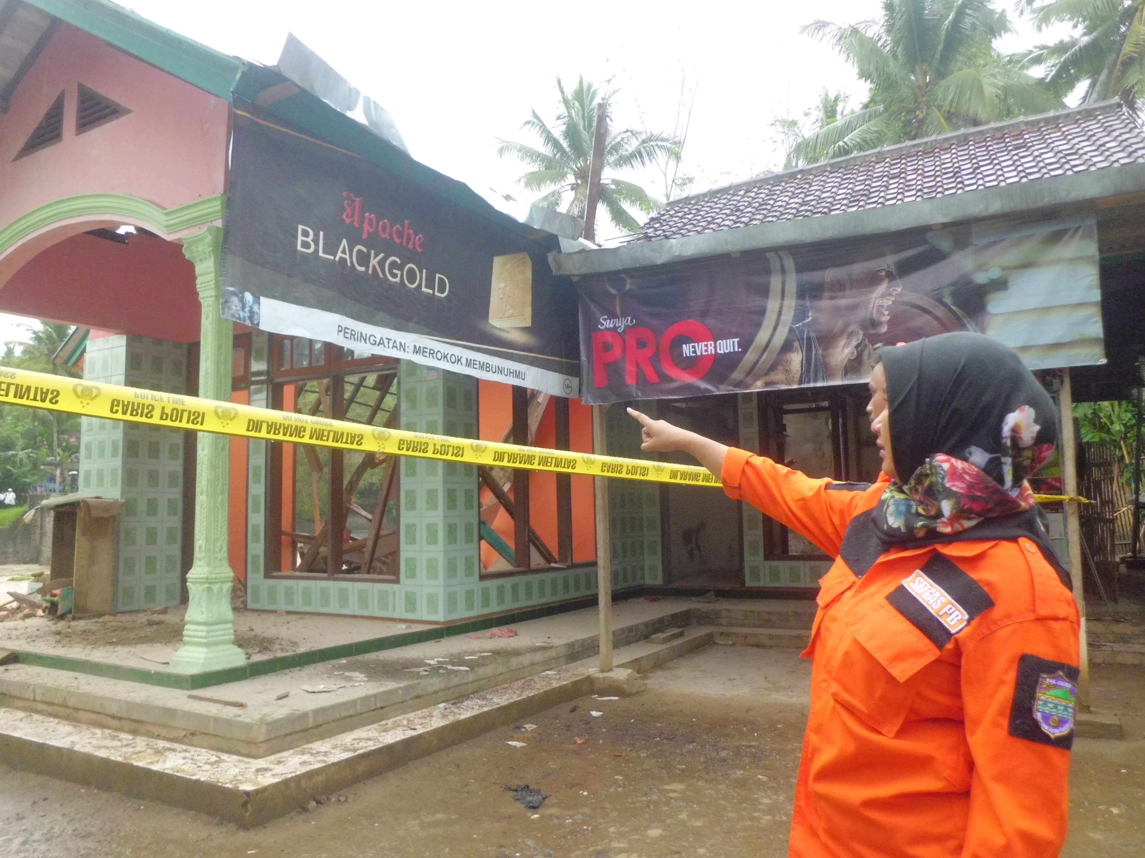 Kabid Kedaruratan dan Logistik BPBD Kabupaten Ciamis, Ani Supiyani, ST., M.Si., melakukan pendataan dan mendistribusikan bantuan makanan siap saji serta mengevakuasi para korban ke tempat yang lebih aman.