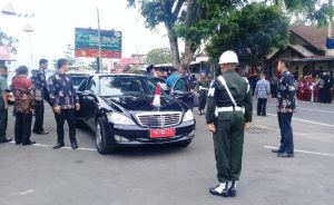 Dalam kunjunganya ke Garut, presiden didampingi Menteri Agraria dan Tata Ruang/Kepala BPN, Sofyan Djalil, Kepala Staf Kepresidenan, Teten Masduki, Gubernur Jawa Barat, Pangdam III/Siliwagi, Kapolda Jabar serta Jajaran Muspida Kabupaten Garut. Setelah itu presiden rencana akan mengunjungi Pendopo Garut. (Yayat Ruhiyat/WP)