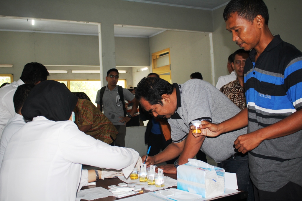 Sebanyak 171 orang peserta yang berasal dari 27 Kecamatan diambil urinenya untuk diperiksa oleh tim BNNK Ciamis, terkait dengan salah satu persyaratan yang harus dipenuhi oleh peserta seleksi calon panwascam Ciamis.