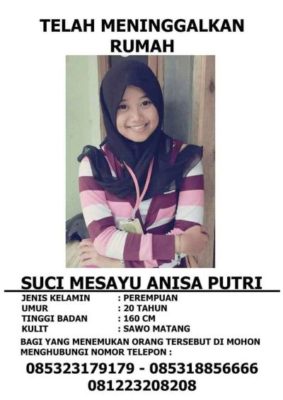 Suci memiliki ciri-ciri tinggi badan sekira 160 sentimeter dan berkulit sawo matang. (WP/Berbagai Sumber)