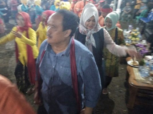 Bupati Pangandaran, Jeje Wiradinata dan Wabup Adang Hadari bersama isteri masing-masing hadir dalam kegiatan tersebut dan larut dalam kegembiraan dengan ikut menari Ronggeng Amen bersama undangan lainnya.