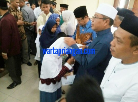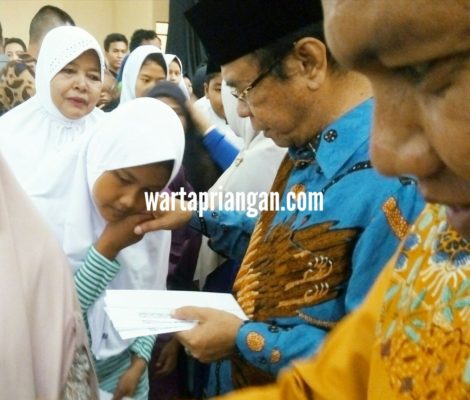 wartapriangan.com, BERITA CIAMIS. Sebanyak 500 anak yatim piatu mendapatkan santunan dari alumni jamaah haji dari KBIH Al Hasan Kabupaten Ciamis dari 21 angkatan haji dan 201 umroh. Penyerahan dilakukan di Gedung Islamic Centre Jalan Iwa Kusuma Somantri Oleh Iing Syam Arifin, Minggu (29/10/2017). Bantuan itu, diberikan dalam bentuk Uang dan sembako.