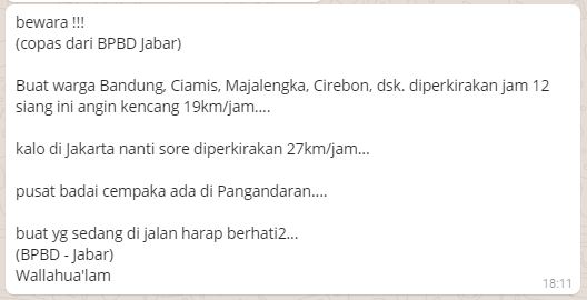 Dengan demikian BPBD Provinsi Jawa Barat menegaskan berita tersebut adalah HOAX dan tidak bertanggung jawab.