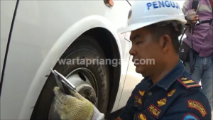 wartapriangan.com, BERITA TASIKMALAYA. Petugas gabungan kepolisian serta Dinas Perhubungan Kota Tasikmalaya menggelar uji kelayakan bus pada Sabtu siang (24/12/2017). Dua pool bus di kawasan Jalan Mitra Batik serta pool di kawasan Jalan Ir. Haji Juanda didatangi petugas gabungan.
