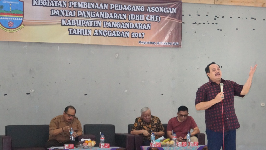 Bupati Pangandaran Jeje Wiradinata dalam sambutannya menyampaikan, hingga saat ini tercatat 1310 orang warga yang mencari nafkah dengan berdagang asongan di Pantai Timur dan Barat Pangandaran.