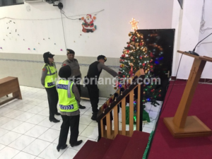 wartapriangan.com, BERITA BANJAR. Menjelang pergantian malam tahun baru, gereja-gereja di Kota Banjar masih ada yang melaksanakan kebaktian. Untuk itu, jajaran Polres Kota Banjar siaga melakukan kegiatan sterilisasi.