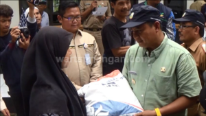 Selain melepas truk yang mensubsidikan beras Rastra, secara simbolis bupati juga memberikan satu karung kepada perwakilan warga masyarakat kurang mampu di Kabupaten Tasikmalaya.