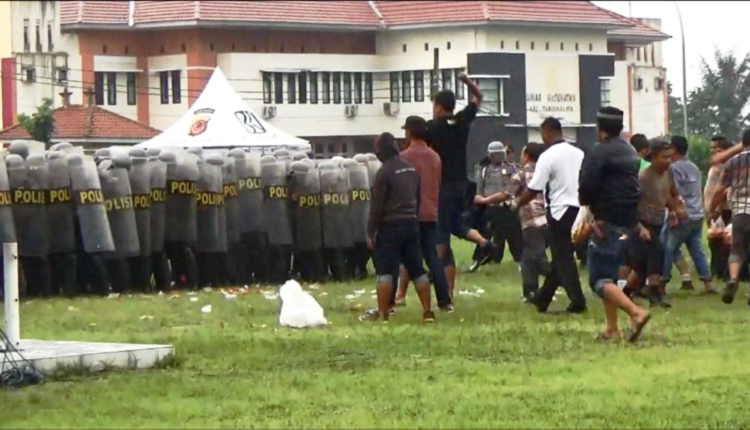 Massa yang datang sambil berorasi ditemui tim negosiator. Mereka kemudian masuk ke kantor KPU untuk berdiskusi. Namun diskusi menemui jalan buntu yang membuat massa emosi dan kehilangan kesabaran. Massa mulai melakukan pelemparan batu dan air mineral.