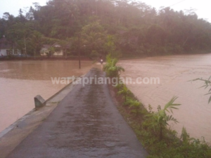 Irfan Hilmi menambahkan, hujan deras kemarin juga mengakibatkan aliran sungai di Panimbang tepatnya di Dusun Mancagar RT 15/07 Desa Purwasari Kecamatan Kawali tersumbat. Longsoran tersebut menimpa aliran sungai sehingga air meluap ke area pesawahan.