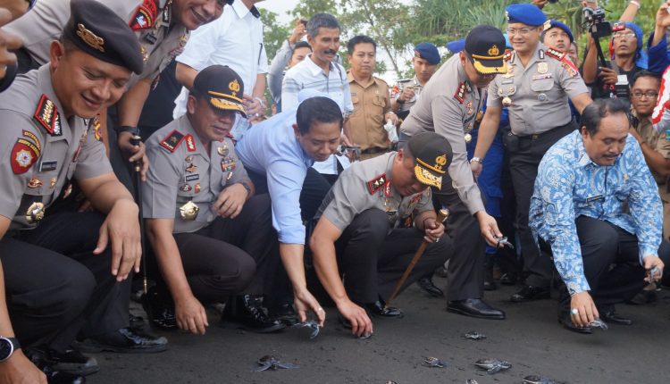 Selain itu sebanyak 100 anak penyu jenis penyu hijau dilepasliarkan sekaligus penandatanganan deklarasi anti hoax bersama pemerintah daerah serta ratusan masyarakat untuk menggunakan media sosial dengan benar, santun dan cerdas. (Iwan Mulyadi/WP)