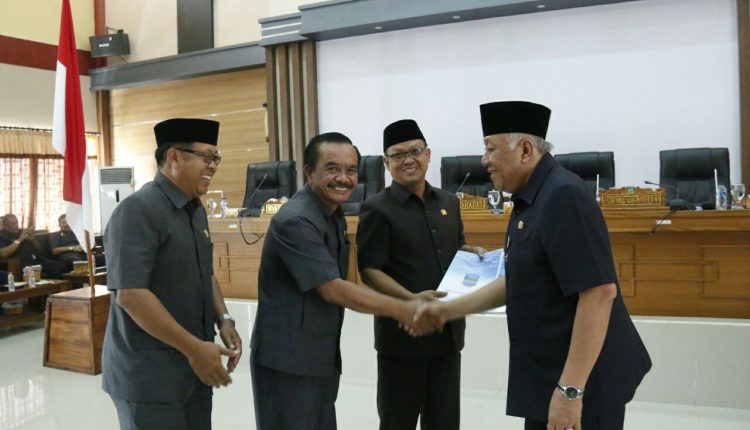 Paripurna diakhiri dengan penyerahan draf Raperda RTRW dari Pemkab Pangandaran oleh Wakil bupati kepada Ketua DPRD Kabupaten Pangandaran H. Iwan M Ridwan.