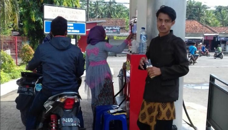 wartapriangan,com. BERITA PANGANDARAN. Ada yang unik di SPBU didepan Pasar Tradisional Kecamatan Parigi, Kabupaten Pangandaran, Kamis (21/4/2018). Semua karyawan wanita dan pria di tempat ini mengenakan busana tradisional saat bertugas.