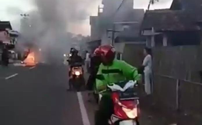 wartapriangan.com, BERITA GARUT. Kecelakaan lalulintas menewaskan dua orang pengendara sepeda motor di jalam Raya Garut Bandung, Kampung Tanjung, Kecamatan Tarogong Kaler, Minggu (29/4). Dua orang pengendara sepeda motor tewas seketika setelah menghantam mobil elf, bahkan akibat percikan api, mobil elf pun terbakar.