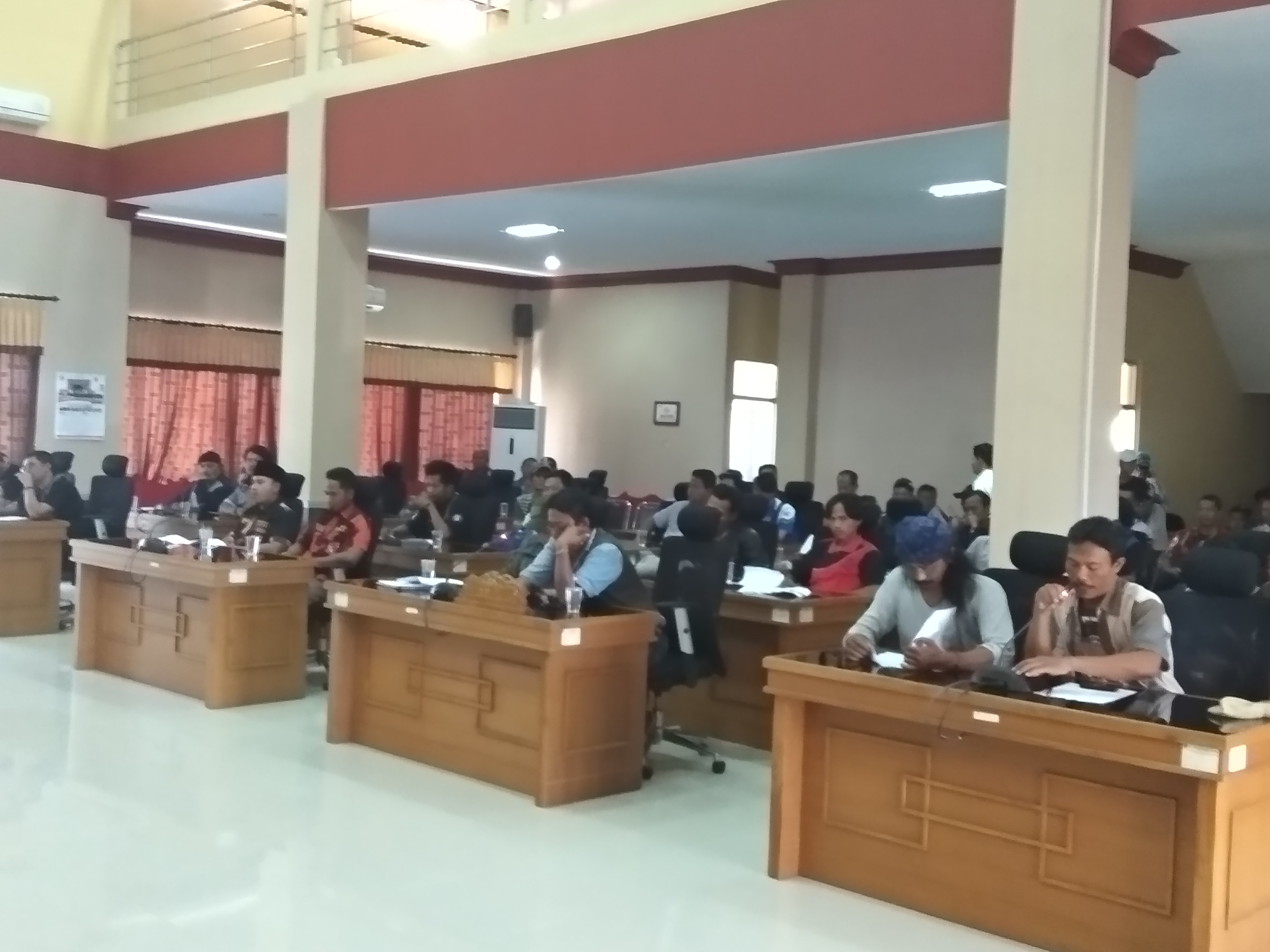 Setelah berorasi di depan gedung, puluhan perwakilan massa melakukan audensi di Ruang Rapat Paripurna DPRD Pangandaran.