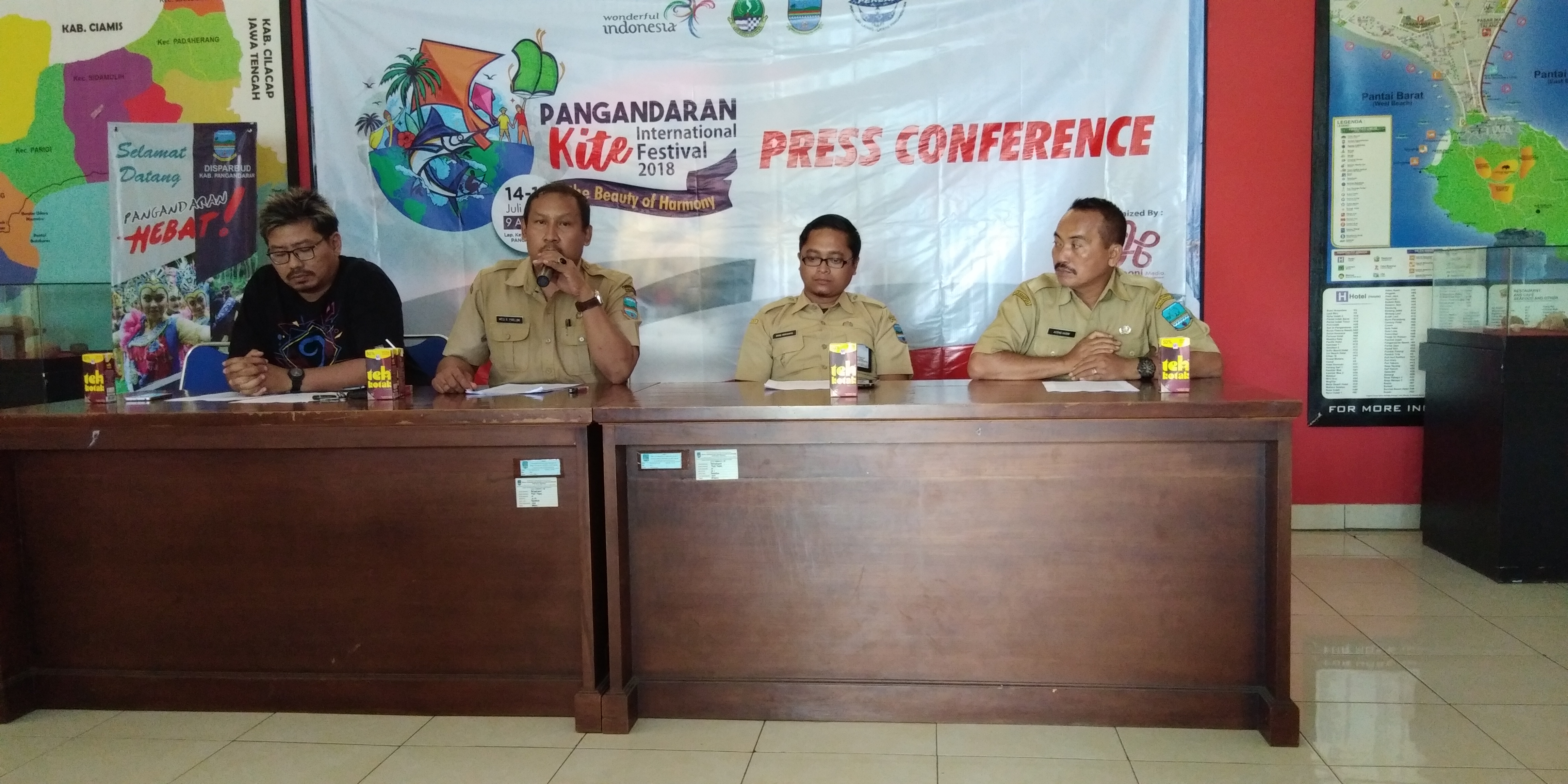 Hal tersebut disampaikan Kabid Ekraf Dinas Pariwisata dan Kebudayaan Kabupaten Pangandaran, Megi Parlumi di dampingi Kabag Kebudayaan Aceng Hasim, Kabid Humas Pemkab Pangandaran Dede Haryanto, Ketua Perlap Kokos dan Surya Adi dari Harmony Media sebagai Event Organizer.
