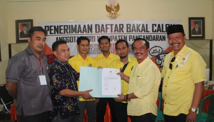 Pendaftaran para caleg partai Golkar itu dipimpin langsung Ketua DPD Partai Golkar Kabupaten Pangandaran, Muhamad Taufik Martin, dimana caleg yang didaftarkan partai tersebut totalnya berjumlah 30 orang.