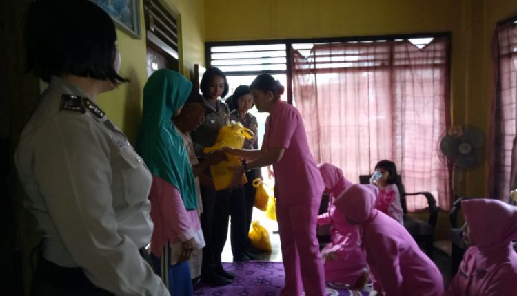 Puluhan Polwan di Banjar Bagikan Sembako Gratis kepada Warga Kurang Mampu