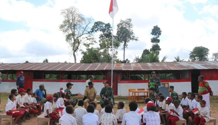 wartapriangan.com, BERITA NASIONAL. Kunjungan perdana Komandan Satgas Pamtas RI-PNG Yonif Raider 323/BP Kostrad Letkol Inf Agust Jovan Latuconsina, M. Si. (Han) beberapa bulan lalu di SD Persiapan Menewa Camp 60 Asiki Distrik Jair Bovendigoel, menyisakan 1 permintaan dari guru dan siswa.