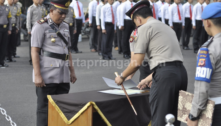 wartapriangan.com, BERITA BANJAR. Polres Kota Banjar menggelar upacara pengukuhan Kapolsek Purwaharja. Pengukuhan dipimpin langsung oleh Kapolres Kota Banjar AKBP. Matrius, S.I.K.,MH., Kamis (13/09/2018).