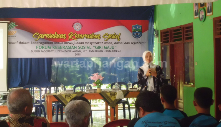Kegiatan Sarasehan Keserasian Sosial itu mengambil tema “Harmoni dalam keberagaman untuk mewujudkan masyarakat aman, damai, dan sejahtera”. Acara itu dilakukan secara bersama dengan Forum Keserasian Sosial “Giri Maju”. Dusun Pager Batu, Desa Batulawang, Kecamatan Pataruman, Kota Banjar, Jawa Barat, Kamis (27/09/2018).