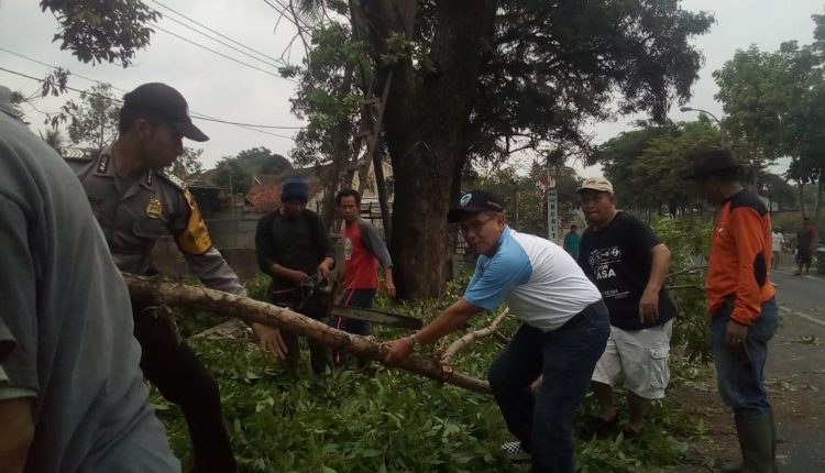 Kapolsek Indihiang, Kompol Moch Bashori didampingi personil dari polsek, Lurah Sukamaju Kidul di bantu warga setempat menebang pohon di pinggir jalan itu karena berpotensi membahayakan orang – orang yang melintas.