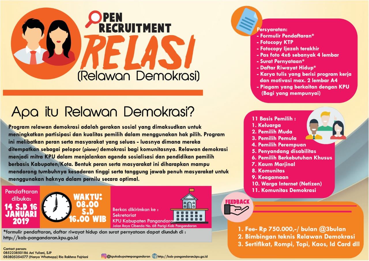 wartapriangan.com, BERITA PANGANDARAN. Komisi Pemilihan Umum (KPU) Kabupaten Pangandaran, akan merekrut sebanyak 55 orang relawan demokrasi.
