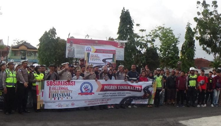 wartapriangan.com, BERITA TASIKMALAYA. Tingginya angka kecelakaan lalu lintas di kalangan remaja, mendorong Satuan Lalu lntas Polres Kabupten Tasikmalaya, menggelar kampanye keselamatan berlalu lintas atau Milenial Road Safety Festival di halaman Mapolres Kabupaten Tasikmalaya Sabtu(13/01/2018) petang.